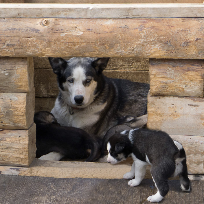 Huskie and pups at their kennels